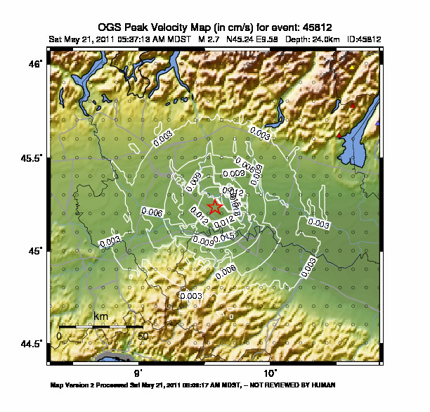 The map shows the latest 100 earthquakes (brown markers) occurred in the area around the epicenter (30 km radius) and the earthquakes with magnitude greater than 3.8 (purple marker, if any) occurred since 1977. Click on each event for details. Furthermore, it is possible to download .kml and .csv files including all events recorded by us in the area around the epicenter (30 km radius), since 1977. export in csv format export in kml formatCaption