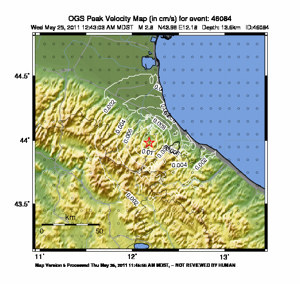 La mappa mostra gli ultimi 100 terremoti (simboli marrone) localizzati entro 30 km dall'epicentro e gli eventi con magnitudo maggiore di 3.8 (con simbolo viola, se presenti) localizzati dal 1977 nella stessa area. Clicca su ogni evento per dettagli. È inoltre possibile scaricare il file .kml o .csv con tutti gli eventi da noi registrati, entro 30 km dall’epicentro, a partire dal 1977. export in csv format export in kml formatLegenda