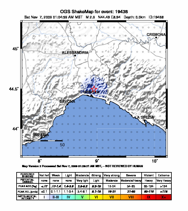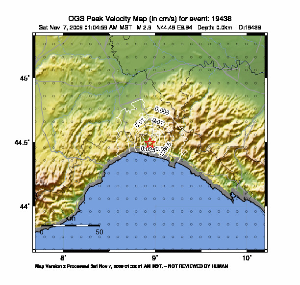 The map shows the latest 100 earthquakes (brown markers) occurred in the area around the epicenter (30 km radius) and the earthquakes with magnitude greater than 3.8 (purple marker, if any) occurred since 1977. Click on each event for details. Furthermore, it is possible to download .kml and .csv files including all events recorded by us in the area around the epicenter (30 km radius), since 1977. export in csv format export in kml formatCaption