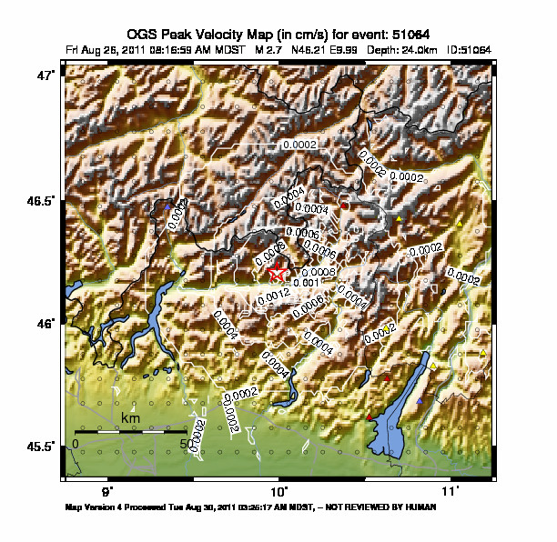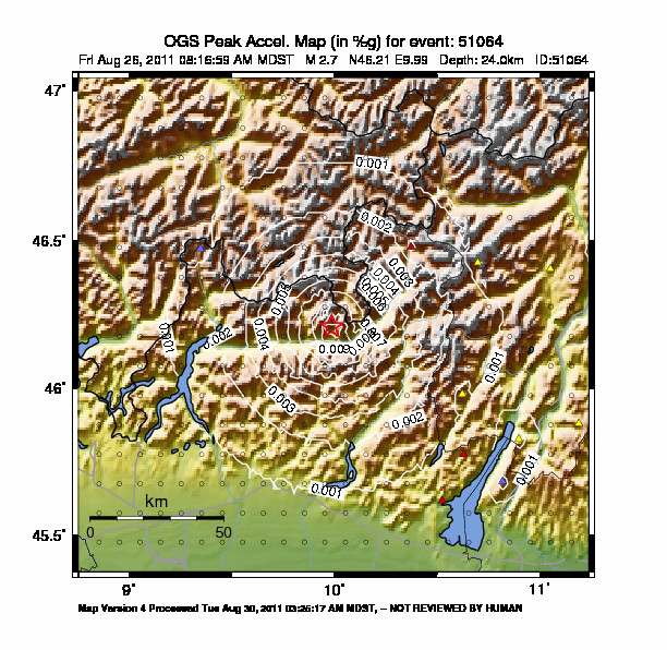 La mappa mostra gli ultimi 100 terremoti (simboli marrone) localizzati entro 30 km dall'epicentro e gli eventi con magnitudo maggiore di 3.8 (con simbolo viola, se presenti) localizzati dal 1977 nella stessa area. Clicca su ogni evento per dettagli. È inoltre possibile scaricare il file .kml o .csv con tutti gli eventi da noi registrati, entro 30 km dall’epicentro, a partire dal 1977. export in csv format export in kml formatLegenda