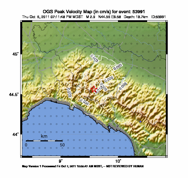 The map shows the latest 100 earthquakes (brown markers) occurred in the area around the epicenter (30 km radius) and the earthquakes with magnitude greater than 3.8 (purple marker, if any) occurred since 1977. Click on each event for details. Furthermore, it is possible to download .kml and .csv files including all events recorded by us in the area around the epicenter (30 km radius), since 1977. export in csv format export in kml formatCaption