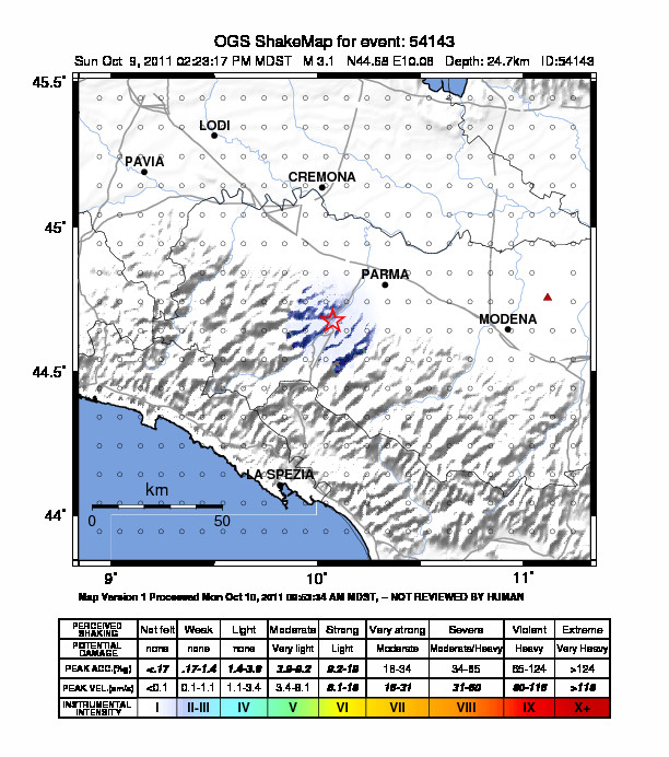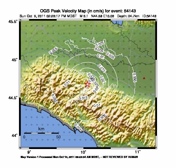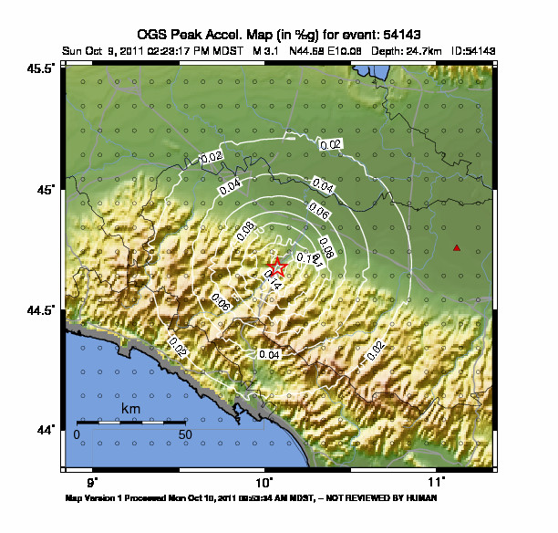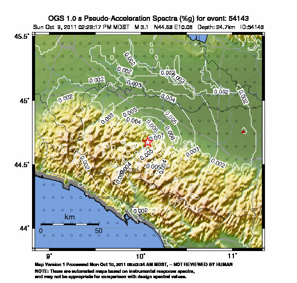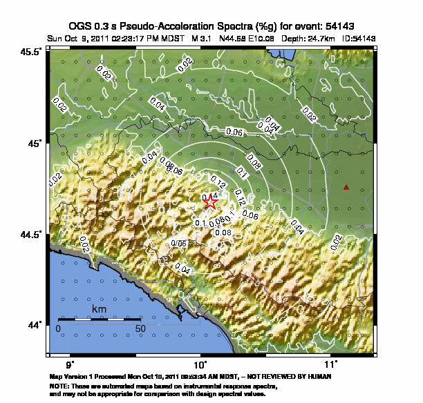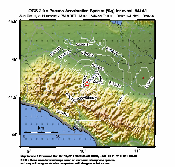 The map shows the latest 100 earthquakes (brown markers) occurred in the area around the epicenter (30 km radius) and the earthquakes with magnitude greater than 3.8 (purple marker, if any) occurred since 1977. Click on each event for details. Furthermore, it is possible to download .kml and .csv files including all events recorded by us in the area around the epicenter (30 km radius), since 1977. export in csv format export in kml formatCaption