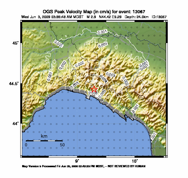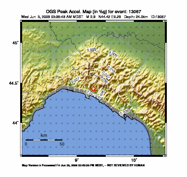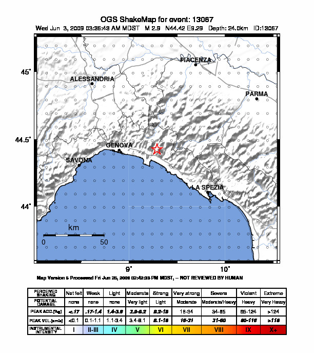 The map shows the latest 100 earthquakes (brown markers) occurred in the area around the epicenter (30 km radius) and the earthquakes with magnitude greater than 3.8 (purple marker, if any) occurred since 1977. Click on each event for details. Furthermore, it is possible to download .kml and .csv files including all events recorded by us in the area around the epicenter (30 km radius), since 1977. export in csv format export in kml formatCaption