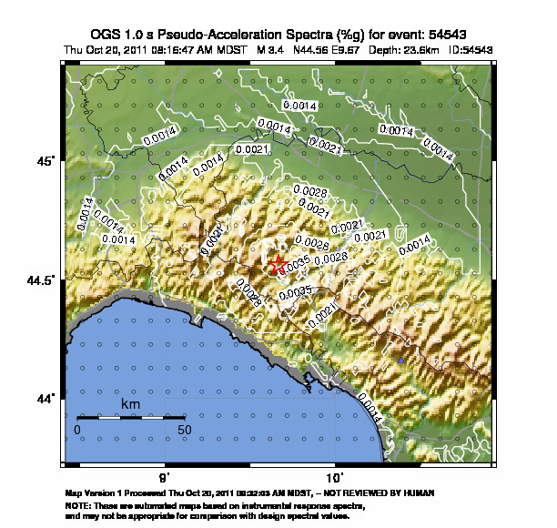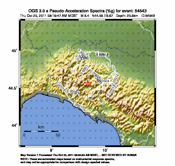 The map shows the latest 100 earthquakes (brown markers) occurred in the area around the epicenter (30 km radius) and the earthquakes with magnitude greater than 3.8 (purple marker, if any) occurred since 1977. Click on each event for details. Furthermore, it is possible to download .kml and .csv files including all events recorded by us in the area around the epicenter (30 km radius), since 1977. export in csv format export in kml formatCaption