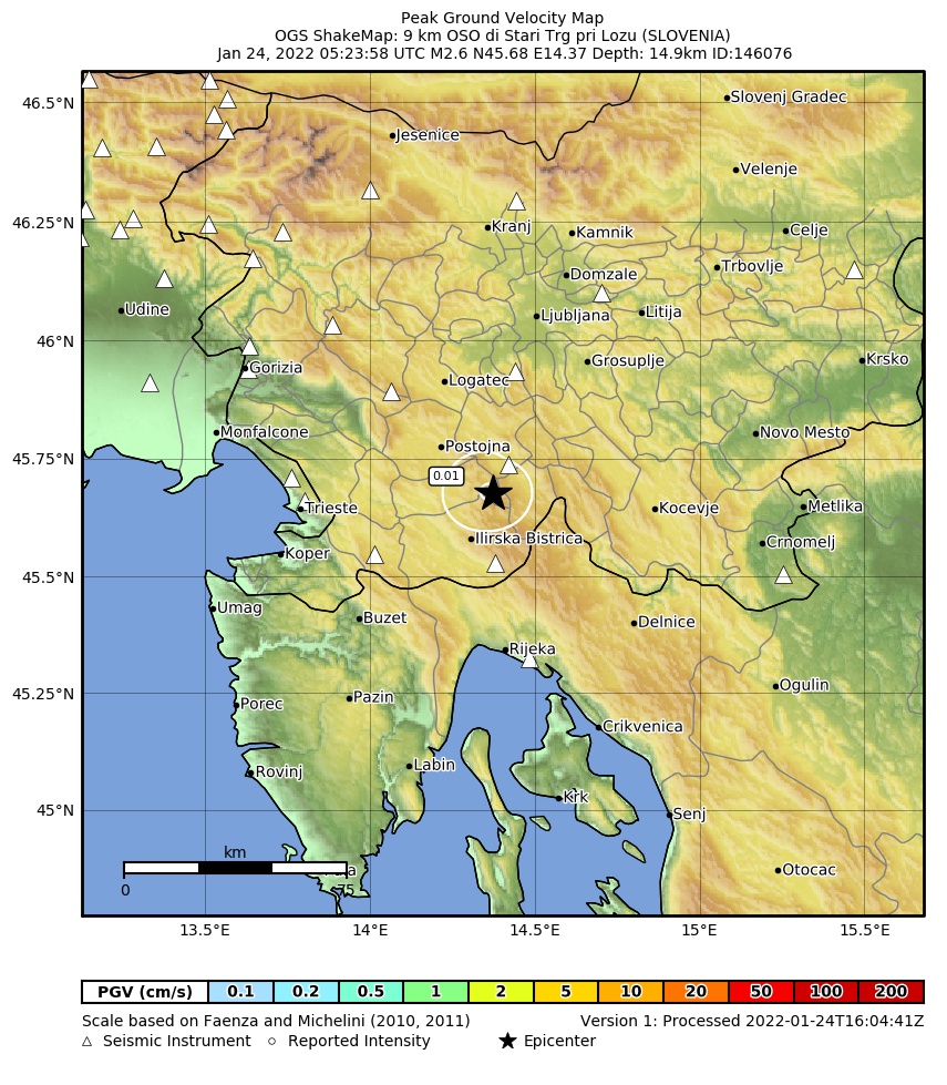 The map shows the latest 100 earthquakes (brown markers) occurred in the area around the epicenter (30 km radius) and the earthquakes with magnitude greater than 3.8 (purple marker, if any) occurred since 1977. Click on each event for details. Furthermore, it is possible to download .kml and .csv files including all events recorded by us in the area around the epicenter (30 km radius), since 1977. export in csv format export in kml formatCaption