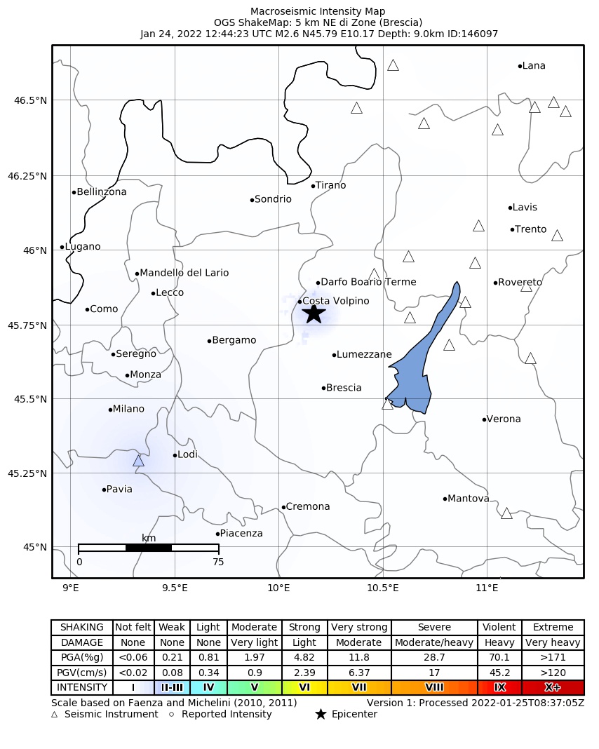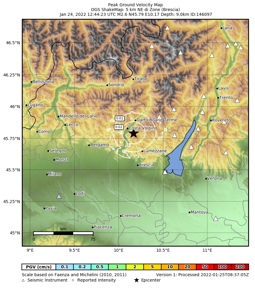 La mappa mostra gli ultimi 100 terremoti (simboli marrone) localizzati entro 30 km dall'epicentro e gli eventi con magnitudo maggiore di 3.8 (con simbolo viola, se presenti) localizzati dal 1977 nella stessa area. Clicca su ogni evento per dettagli. È inoltre possibile scaricare il file .kml o .csv con tutti gli eventi da noi registrati, entro 30 km dall’epicentro, a partire dal 1977. export in csv format export in kml formatLegenda