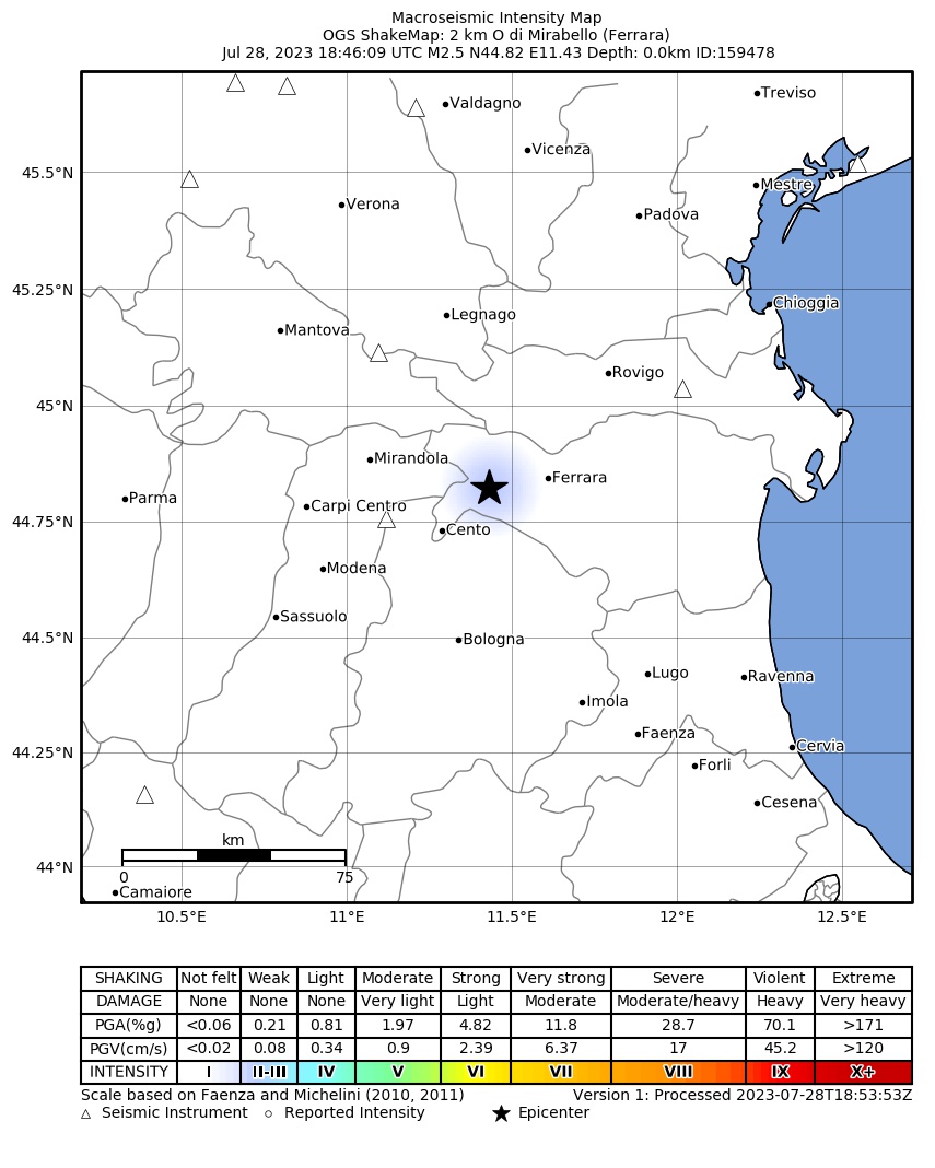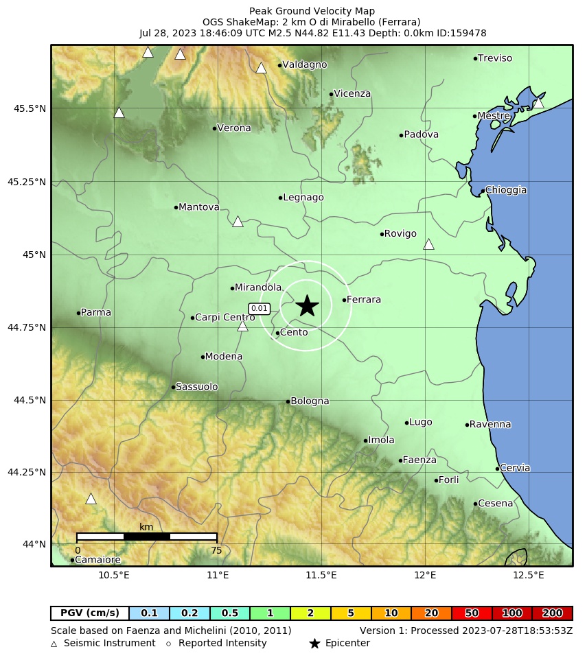 La mappa mostra gli ultimi 100 terremoti (simboli marrone) localizzati entro 30 km dall'epicentro e gli eventi con magnitudo maggiore di 3.8 (con simbolo viola, se presenti) localizzati dal 1977 nella stessa area. Clicca su ogni evento per dettagli. È inoltre possibile scaricare il file .kml o .csv con tutti gli eventi da noi registrati, entro 30 km dall’epicentro, a partire dal 1977. export in csv format export in kml formatLegenda