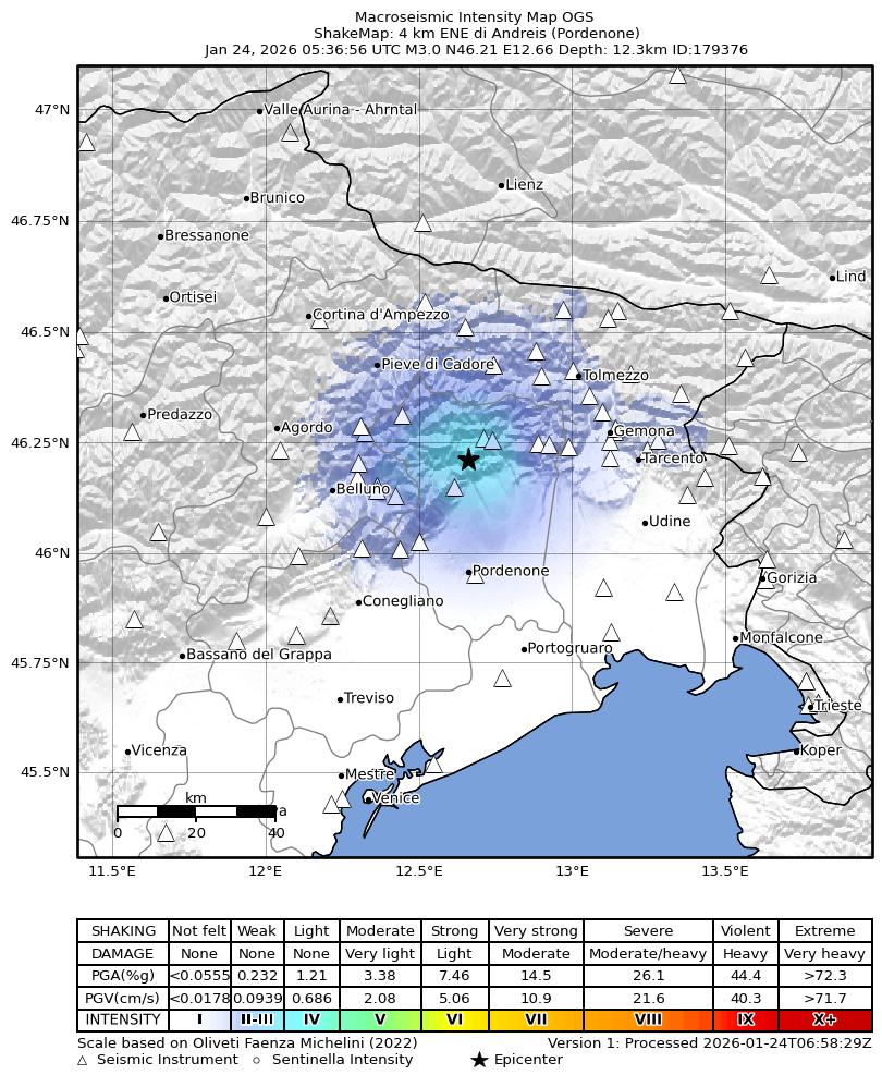 La mappa mostra gli ultimi 100 terremoti (simboli marrone) localizzati entro 30 km dall'epicentro e gli eventi con magnitudo maggiore di 3.8 (con simbolo viola, se presenti) localizzati dal 1977 nella stessa area. Clicca su ogni evento per dettagli. È inoltre possibile scaricare il file .kml o .csv con tutti gli eventi da noi registrati, entro 30 km dall’epicentro, a partire dal 1977. export in csv format export in kml formatLegenda
